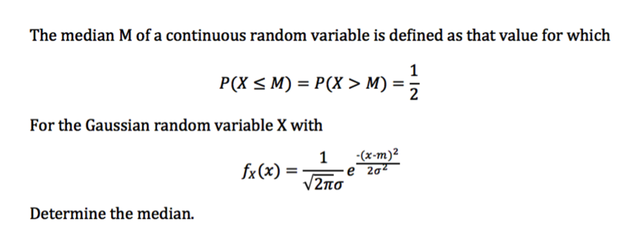Solved The Median M Of A Continuous Random Variable Is Chegg Com